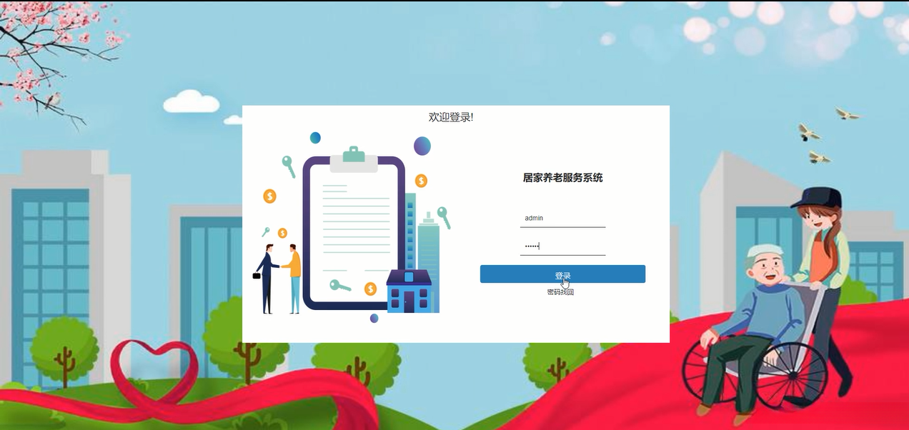 该系统采用Spring Boot框架构建居家养老服务小程序,并允许用户角色通过个人账号名称及密码完成登录操作。如图所示。