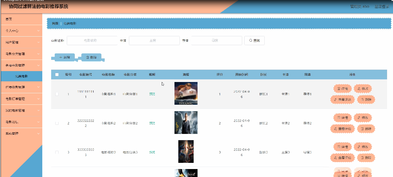 随着电子技术的普及和快速发展,线上管理系统被广泛的使用,有很多商业机构都在实现电子信息化管理,电影推荐也不例外,由比较传统的人工管理转向了电子化、信息化、系统化的管理。