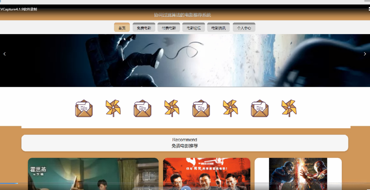 电影推荐系统,在系统首页可以查看首页,免费电影,付费电影,电影论坛,电影资讯,个人中心等内容,并进行详细操作。