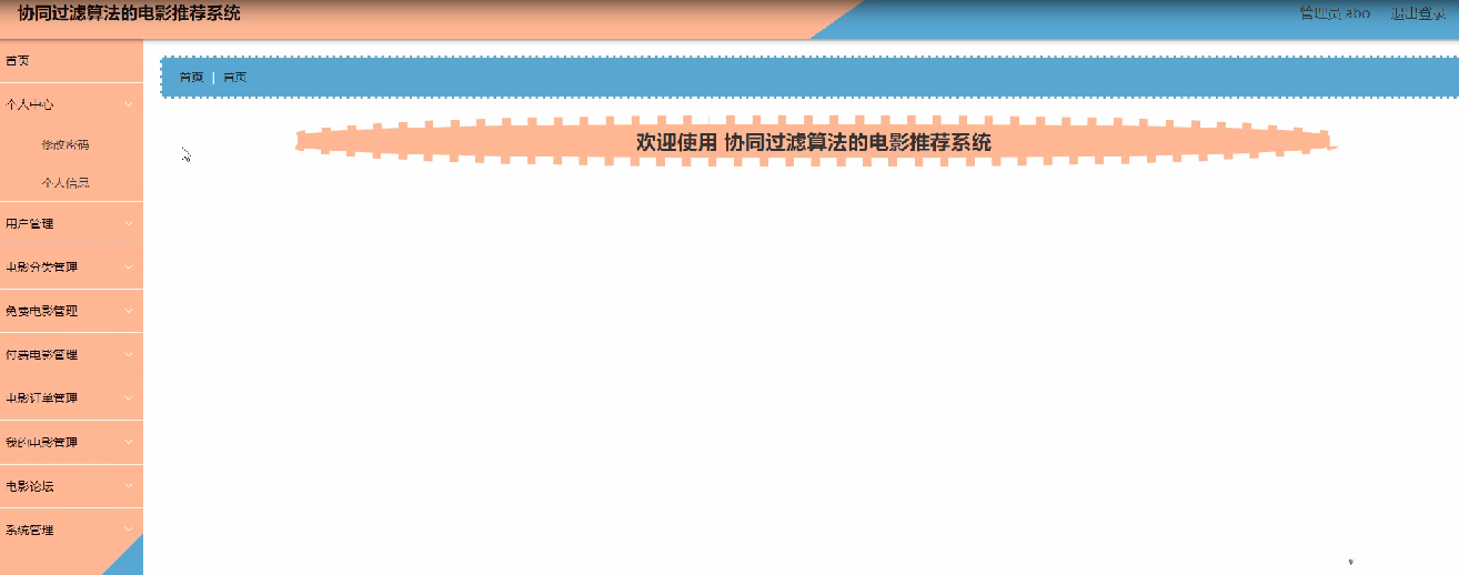 管理员登录系统后,可以对首页,个人中心,用户管理,电影分类管理,免费电影管理,付费电影管理,电影订单管理,我的电影管理,电影论坛,系统管理等功能进行相应的操作。