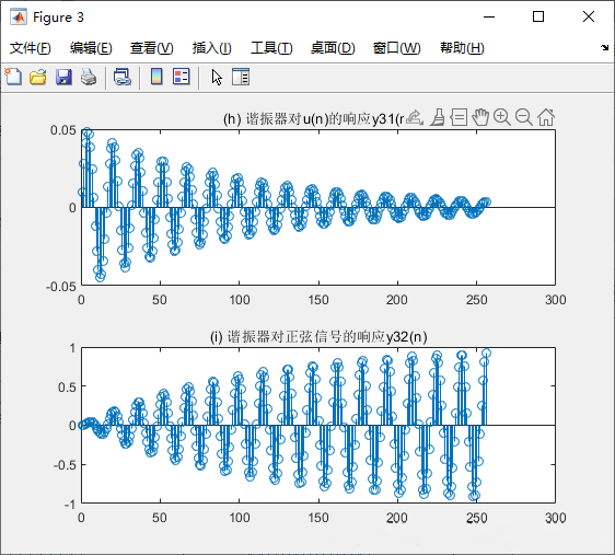 y32n=filter(B, A, xsin); %谐振器对正弦信号的响应y32n