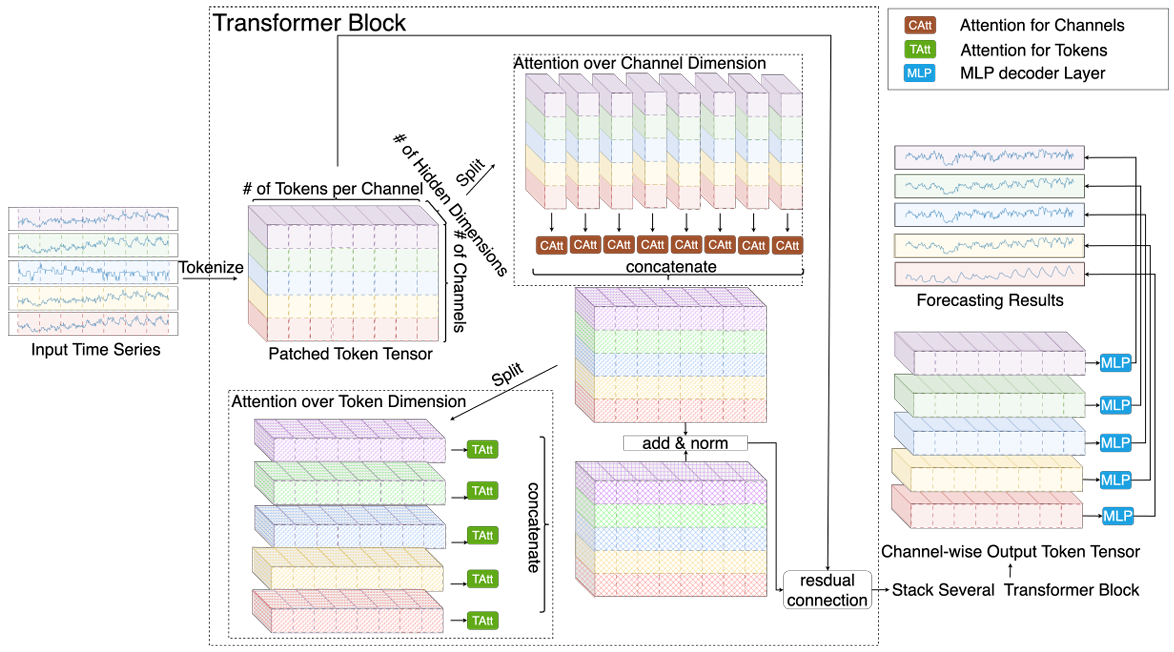 设计了一种通道对齐注意力结构,使得模型能够同时捕捉信号间的时间相关性和多变量间的动态依赖。