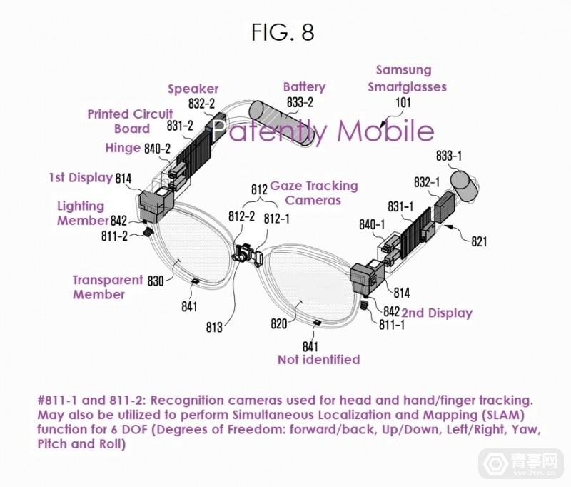 三星一项创新性研究发布(专利编号WO2022149829),着重说明了一种创新性架构设计。例如,在附图中展示出镜腿采用了触点式设计,并且左侧边缘部分支持触控操作和滑动式的交互方式。同时该装置内部结构也非常完善。