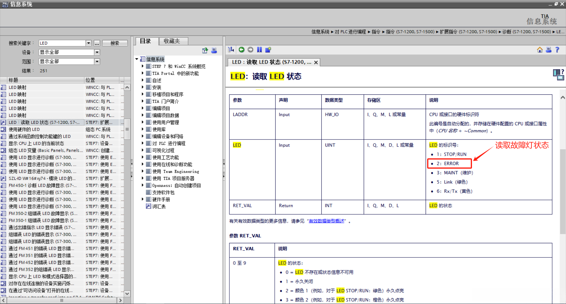 博途右侧指令树,可以直接搜索"LED"指令,之后在程序里直接调用