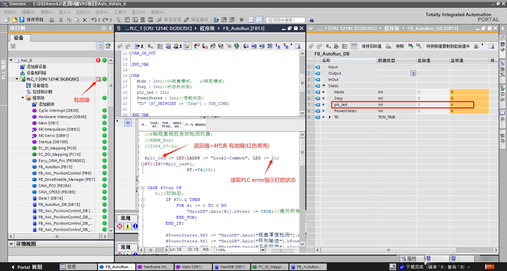 S7-1200/1500CPU因功能扩展模块及总线接口PN的介入,可能引发系统错误报警。当CPU上的ERROR指示灯点亮时,必须执行故障安全联锁操作。首先,我们需获取CPU的故障信息,为此,我们先探讨如何通过ERROR指示灯状态来判断故障情况。
