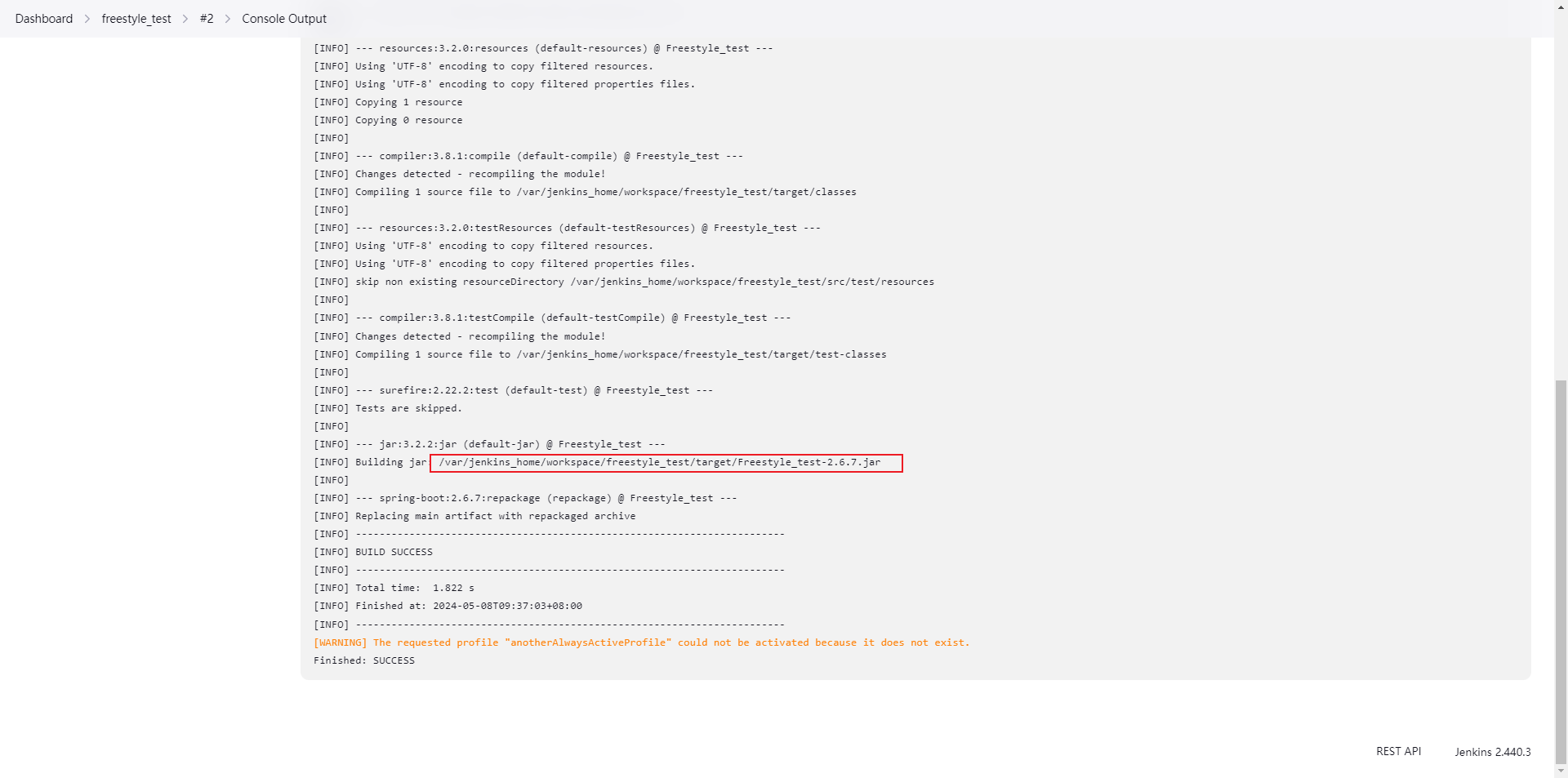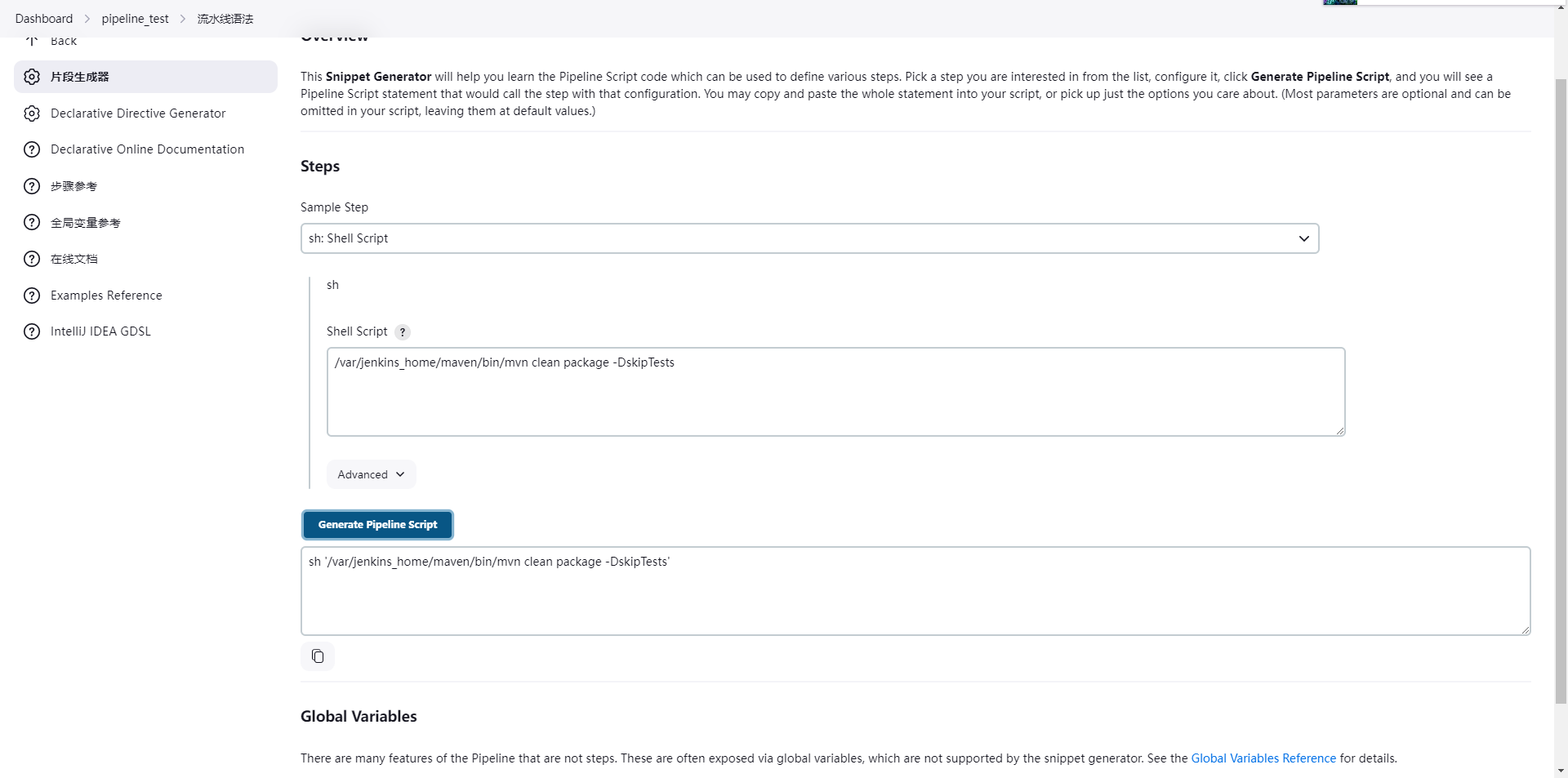 sh '/var/jenkins_home/maven/bin/mvn clean package -DskipTests'