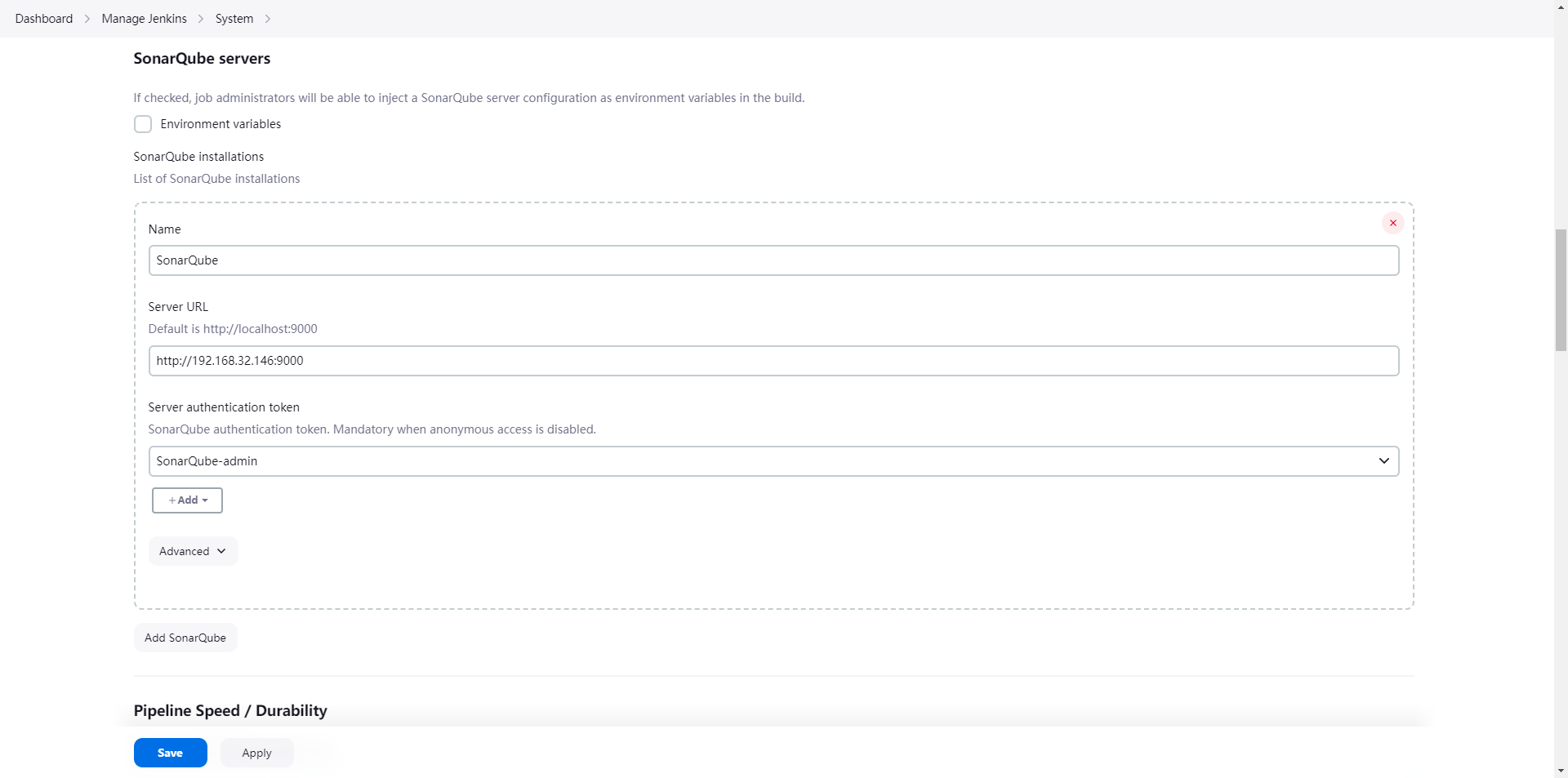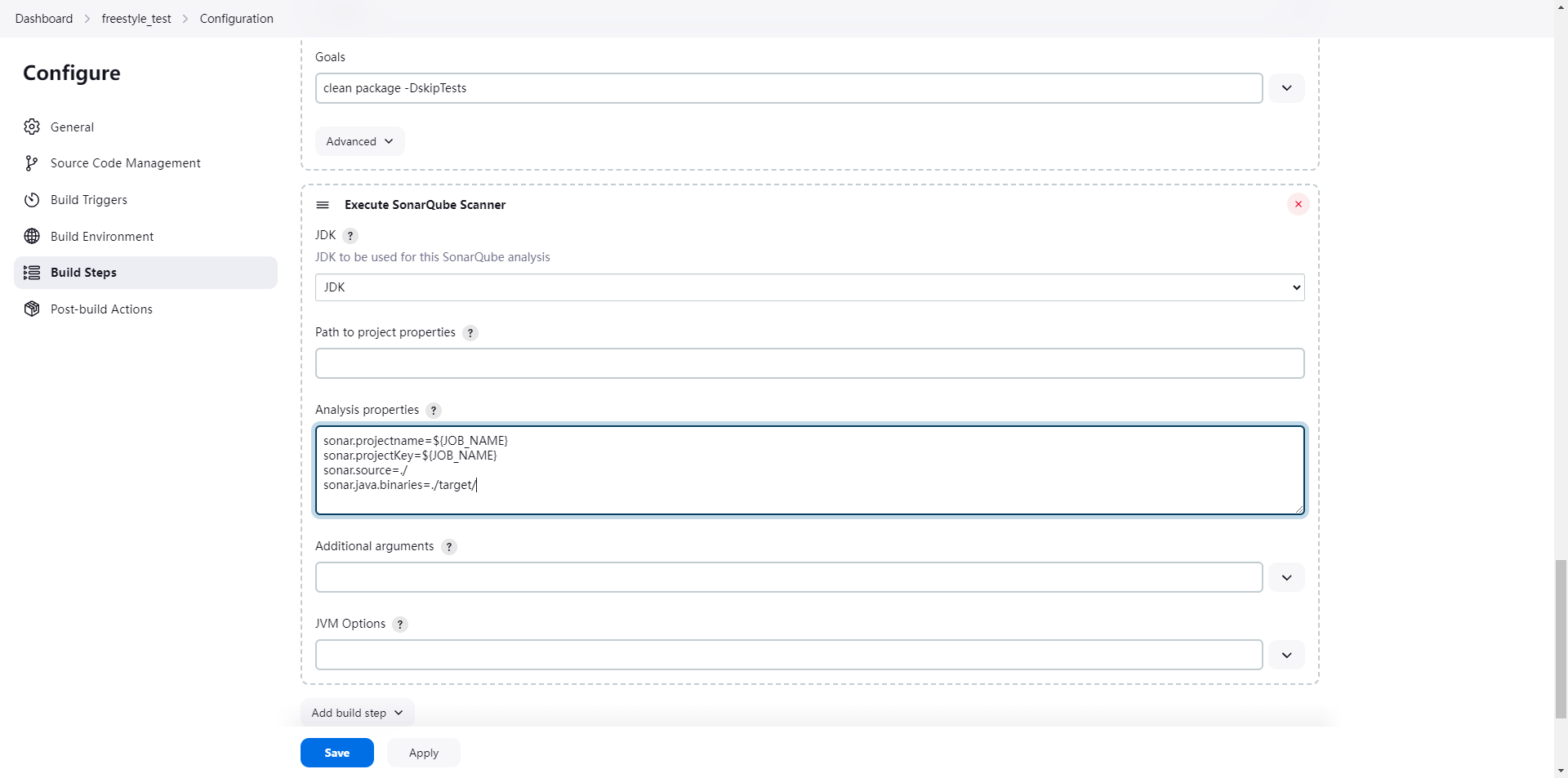 sh '/var/jenkins_home/sonar-scanner/bin/sonar-scanner -Dsonar.projectname=${JOB_NAME} -Dsonar.projectKey=${JOB_NAME} -Dsonar.source=./ -Dsonar.java.binaries=./target/ -Dsonar.login=da3b131bd550db98f33e5d8359d2e03be1ea1a8f'