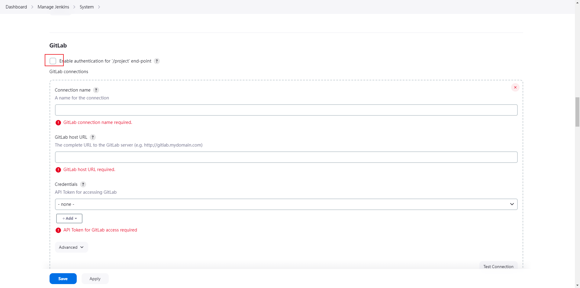 在Jenkins全局配置中去掉gitlab认证