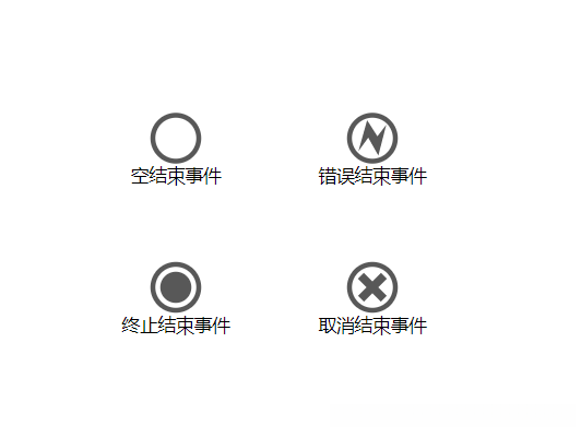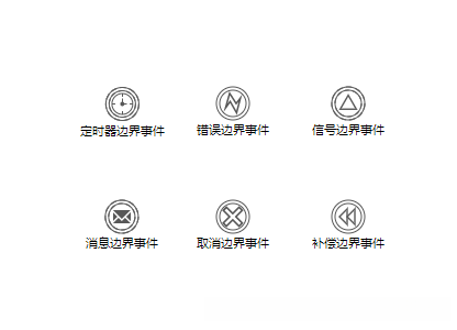 消除了边界的事件采用带有内部取消图标的中间类型事件(由两个同心圆圈构成)来表示。其中,白色且未填充的取消图标用于表示捕获的意义。