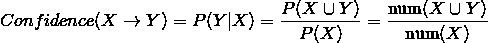 X → Y 的置信度表示在先决条件 X 发生的情况下,由规则 X → Y 推出 Y 的概率。