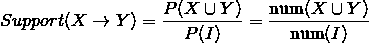 X → Y 的支持度表示项集 {X,Y} 在总项集中出现的概率