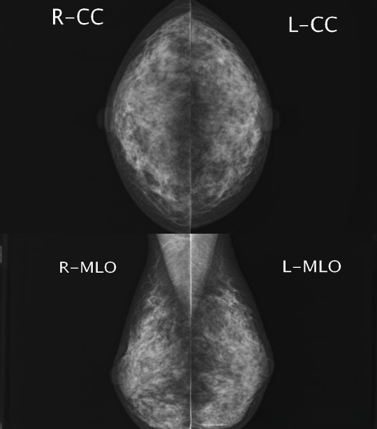 1、影像:轴位片(头足位 CC) 斜位片(MLO)*左右=4张影像