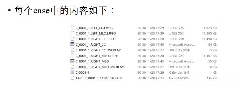 其中LJPE文件是乳腺影像数据的原始存储格式,在医疗图像处理过程中正逐步转换为PNG格式。每个病例包含四张乳腺影像,在存在病变的情况下至少有一张影像带有分割标记。此外,在处理过程中需要特别关注的是:.MAT文件是由原-overlay信息提取而来的分割标记数据。