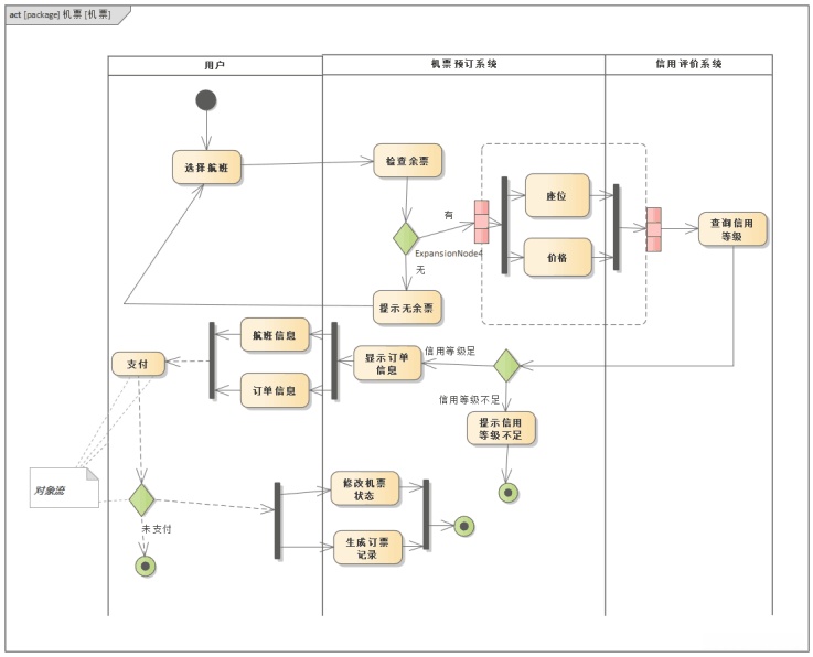 UML机票预订系统购买机票业务建模-活动图