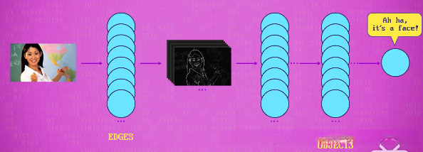 ④ 卷积神经网络:权重即核的数字;可自行生成核;多层嵌套最终识别面部