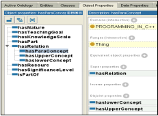 (hasCaseStudies)、重要程度(SignificanceLevel)、等基本属性(图 4 )。定义了该课程本体的类之间的同位知识