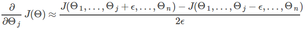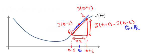 gradApprox = (J(theta + eps) – J(theta - eps)) / (2*eps)