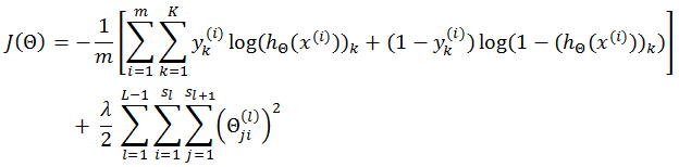 实际上只需要认知Cost function所代表的是预测值与真实值之间的差异就可以方便地根据具体问题来定制属于自己的Cost函数表达式在Coursera机器学习课程中将神经网络视为输出层采用逻辑回归模型的分类器则其代价函数如上所示
