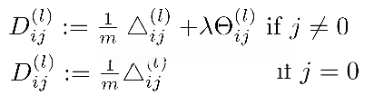 我们获得了所有的误差表达式后,从而能够求取代价函数的导数.当λ设为0时,默认情况下未进行归一化处理