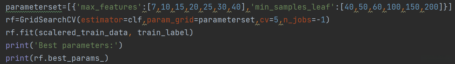 在对随机森林算法进行深入调整和优化的过程中,这两个关键超参常让我难以确定取值。后来我才认识到网格搜索是一种系统性的方法用于探索最佳模型配置。起初我认为这是一种自动化调参工具,在实际操作中发现它更像是一个全面测试方案——通过遍历所有可能的超参组合来评估模型性能。然而这种方法存在明显的局限性——耗时较长,在实际应用中往往难以满足效率要求;因此,在尝试使用这种方法时花费了整整三天的时间才能获得满意的结果。实现过程如图9所示