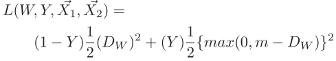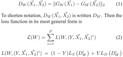 与以前LLE等无监督方法不同的是,这里作者提出来的时候是有监督的,也就是一个label,表达两个样本X1和X2是否是相关的,0或者1,如果是0(相关)的话,用LD让他们的特征更近,如果是1(不相关的)的话,用LS让他们的特征更远。具体如下式: