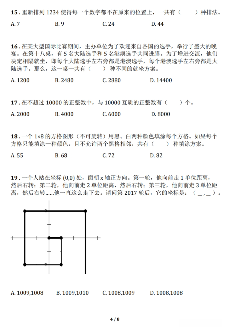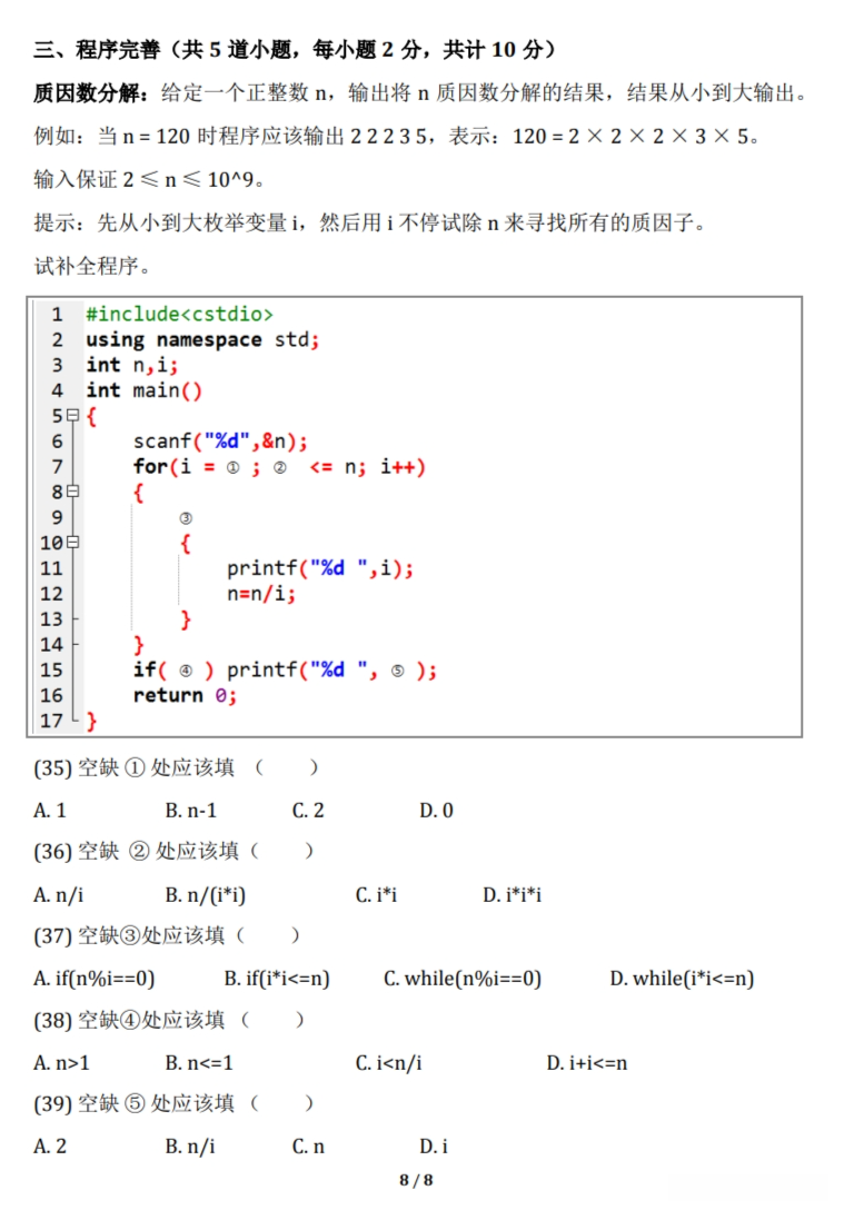 二:问题求解每题5分,共10分 1.重新排列10个不相同的数,使各自都不在自己原来的位置上,则共有几种排列: 2.12^100%19= 23^30%10000= 三;读程序写结果每题8分,共32分 1...