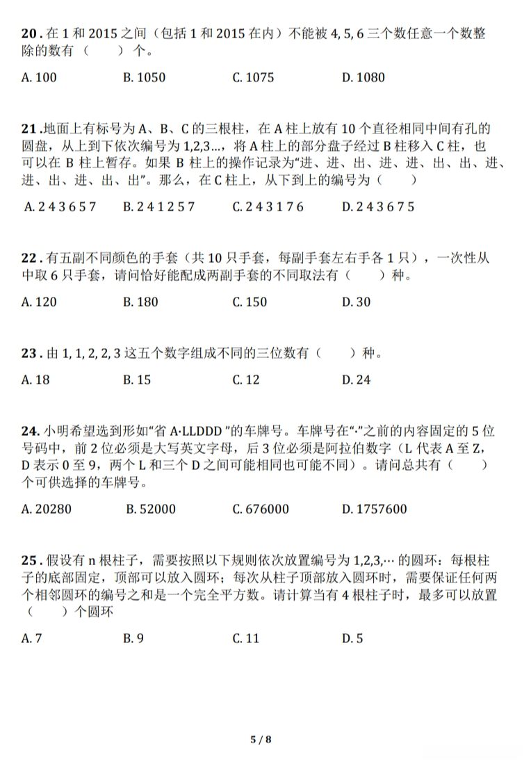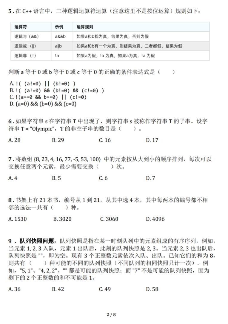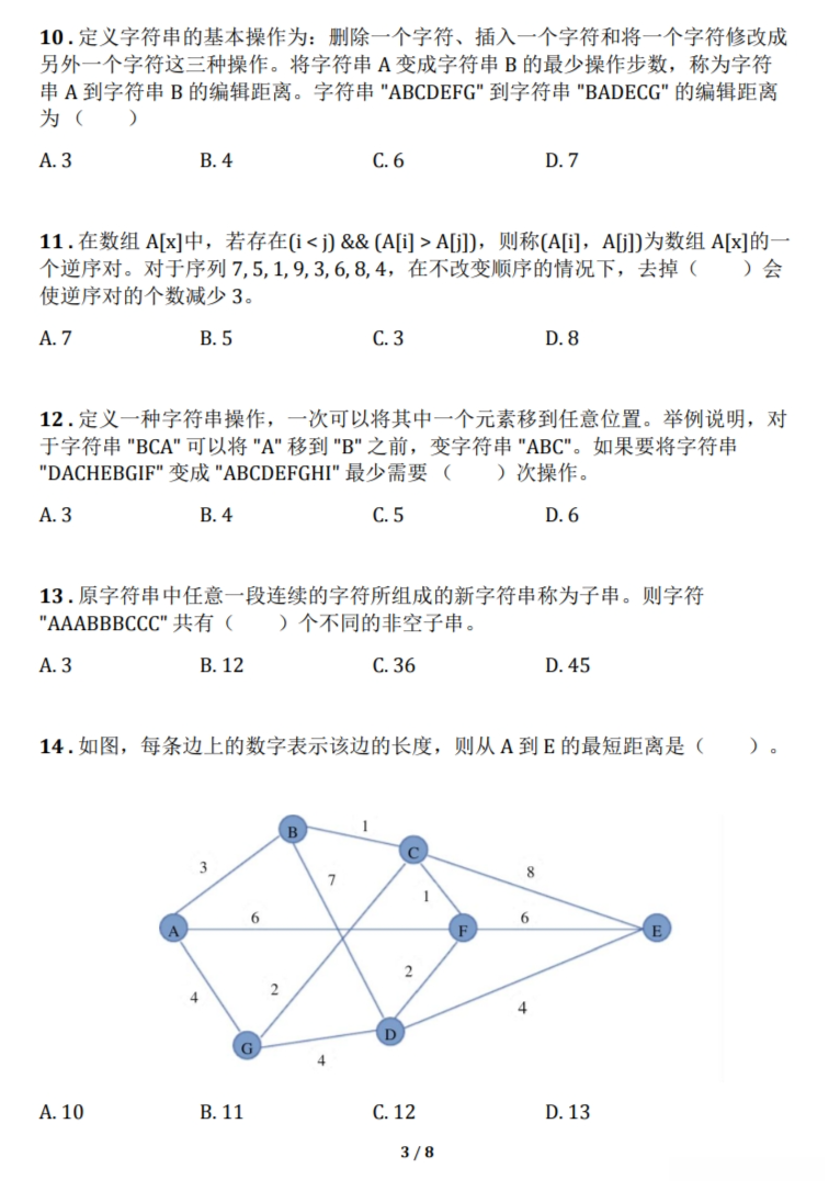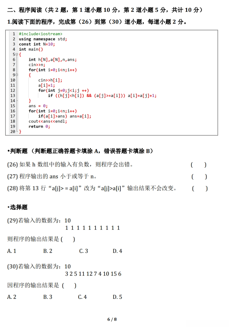 来源:2024年北京海淀区中小学信息学竞赛(初赛)试题6547网 2024年北京海淀区中小学信息学竞赛(初赛)试题 题目总数:24总分数:100 单项选择题共有15道小题,每道小题3分,共45分 第1...