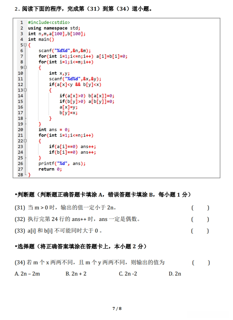 2023年海淀区信息学竞赛试题答案 1.C 2.C 3.A 4.A 5.B 6.A 7.B 8.C 9.C 10.A 11.C 12.B 13.C 14.B 15.B 16.C 17.B 18.A 1...