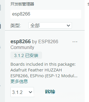 打开工具–开发板-开发板管理器,搜索esp或esp8266,然后选择版本,安装。