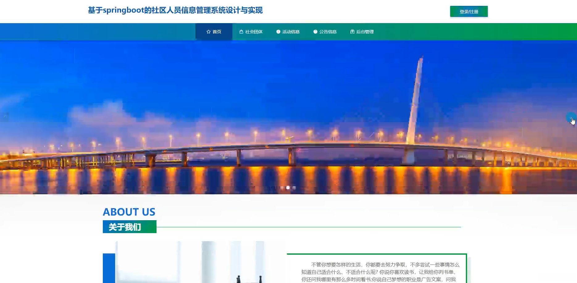 研究目的: 本研究的主要目的是设计并实现一个智慧社区信息服务系统,该系统具备以下功能:居民信息管理、楼房信息管理、通讯录管理、人口统计与登记、特殊群体管理、社会团体管理、活动信息发布、医保信息管理、社保信息管理和社团报名等。通过这些功能,为居民提供全面、便捷的信息服务,提高社区管理水平和居民生活质量。
