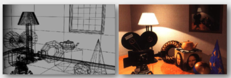 通过构建三维模型进行分析,在屏幕上显示窗口中的每一个像素点的颜色值。每个像素点的颜色受光照条件、环境情况以及物体材质等多种因素的影响。