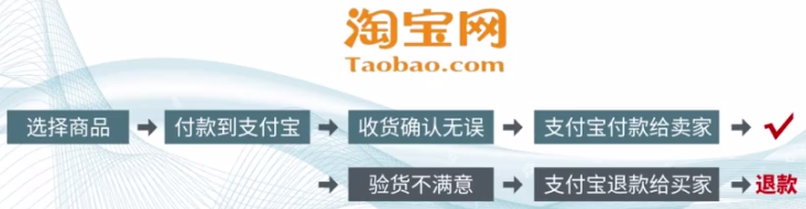 淘宝:平台商家即为淘宝平台上运营的个体。智能合约即为一个完整的售货流程。当客户确认收货时,平台会将款项支付给商家;如需退货处理,则由商家启动相应的退货程序。