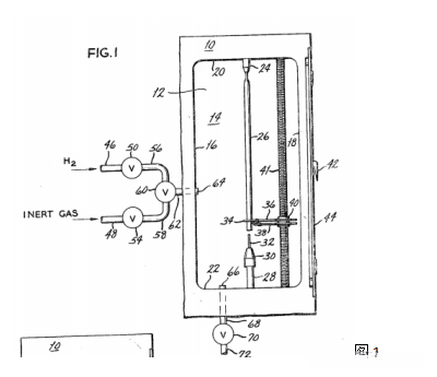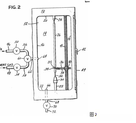透视图1展示了硅区精炼室及其相关的净化气体流动路径。该区域内的精炼装置如图所示,在系统启动阶段(标记为1)运行良好。同一区域内的非法化操作(标记为2)已被实施。在此过程中(标记为1),区域精炼室的主要组件包括支持面板(编号10),通常由固定板(编号12)支撑。腔体结构包括后壁(编号14)、侧壁(编号16、18)、顶壁(编号20)和底壁(编号22)。在视图中忽略前壁与后壁配合的位置(标记为14),以便清晰显示腔体内部的分层细化装置。