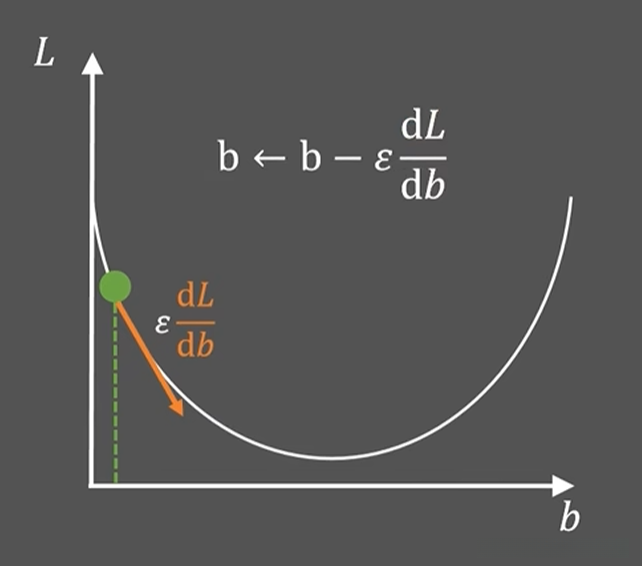 ,箭头的方向是斜率的负方向,让b更新为