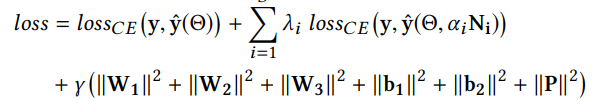 其中y表示预测评级,αi表示噪声系数,Ni表示附加的对抗性噪声,λi控制对抗正则化强度,γ控制L2正则化强度,W1,W2,b1,b2是编码器/解码器权重和偏差, P是用户嵌入矩阵。 W3是噪声混合层的权重矩阵。对于ACEC来说,s=2,