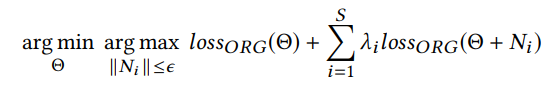 在本节中,我们将介绍所提方法的详细信息。我们定义对抗性噪声作为模型参数扰动来最大化整体损失函数: