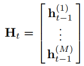 由M个组件构成的系统中,在分析组件间交互时发现:每一个组件都需要被前一个时间步骤中所有生成物(Ht)所记录下来