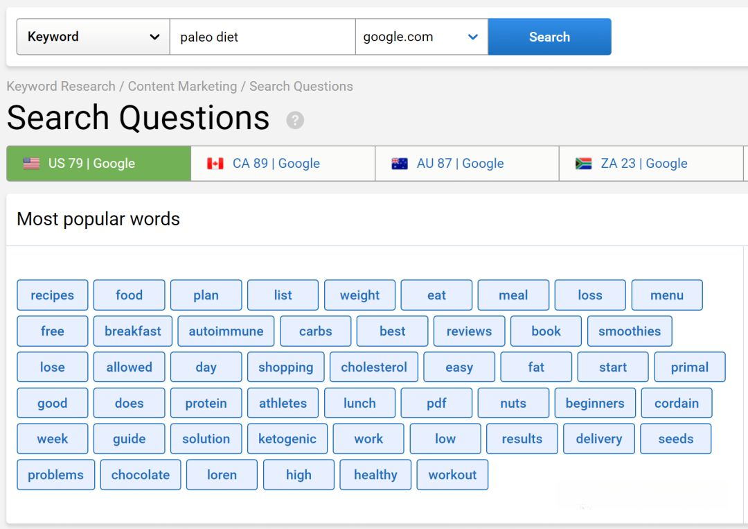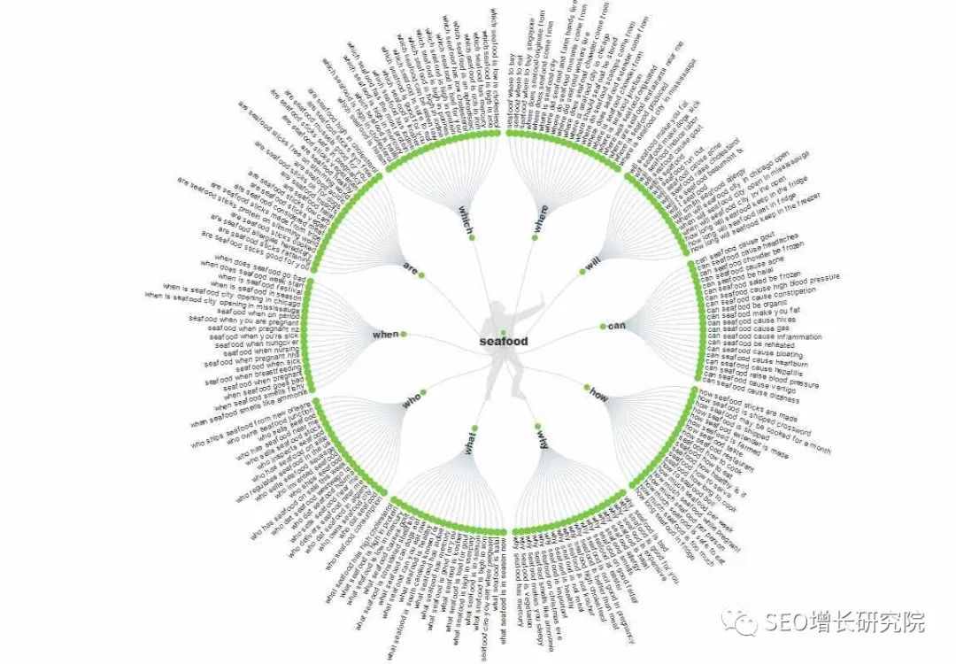 一个收集长尾词非常好用的工具,只需要输入一个词,就能得到人们在网络上围绕这个话题提出的问题和常用词组。