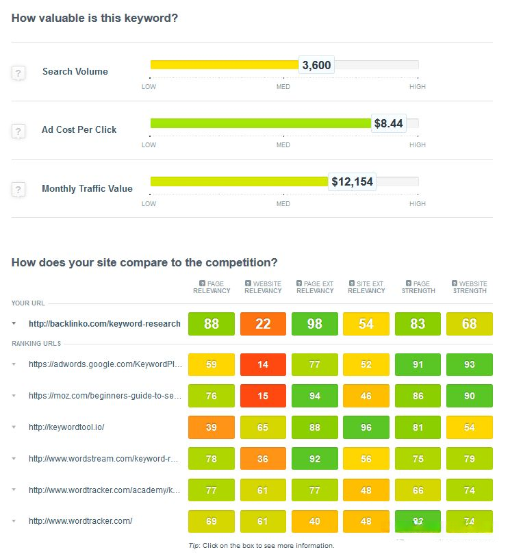 现在都知道要根据谷歌的语义检索优化内容,添加LSI关键词,但应该添加哪些词,很多人可能并不太清楚,这个工具能够给出不同词的评分供你参考。