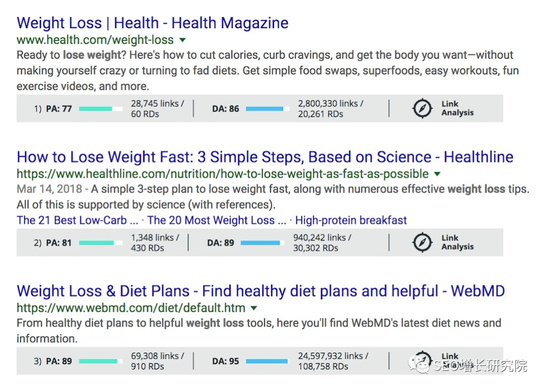 多方对比你的网站和排名首页的网站对比,包括DA、PA数据还有页面SEO等,知己知彼。