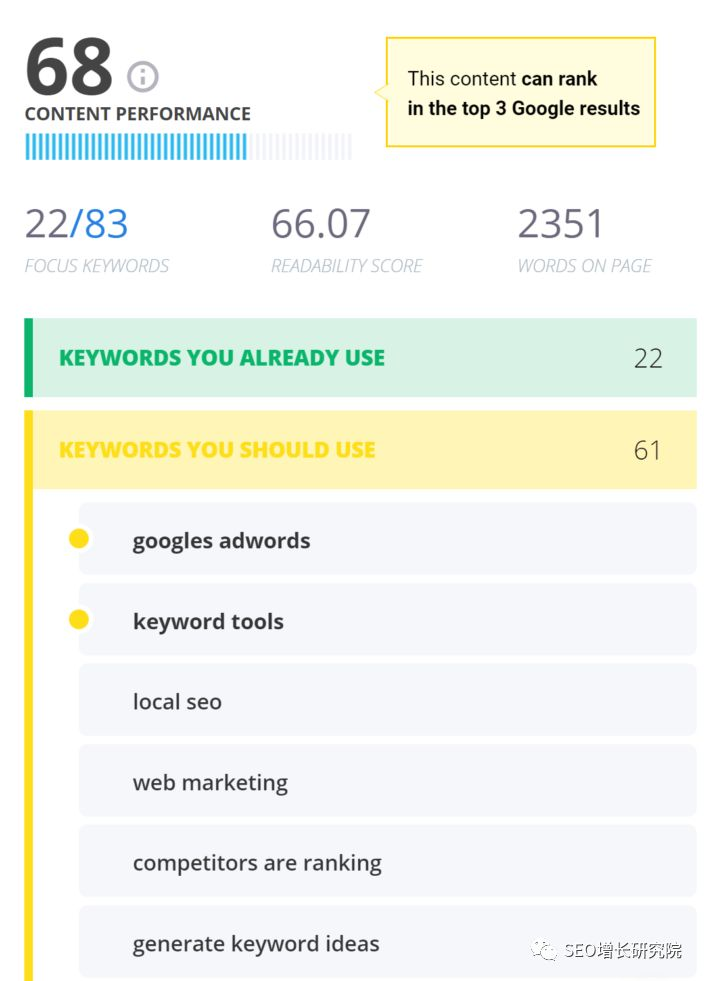 一个综合评估关键词和相应内容优化的工具,可以判断哪些词更适合推广。