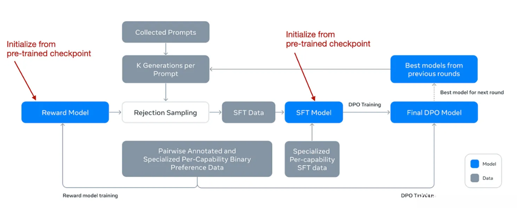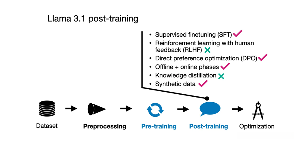 来自Llama 3.1论文的带注释的图表,描述了后训练过程。