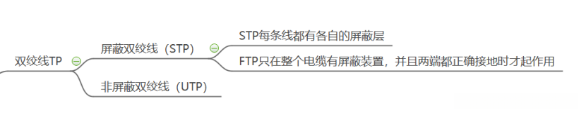 双绞线的分类:按是否带有保护层将之划分为带保护层的双绞线(Shielded Twisted Pair, STP)与不带保护层的双绞线(Unshielded Twisted Pair, UTP)。