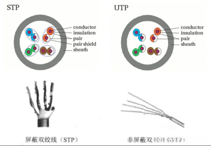 而不带保护层的部分则为Unshielded Twisted Pair (UTP)。