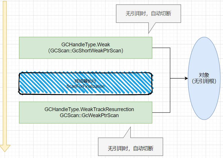 WeakTrackResurrection 会在终结器执行完毕后识别目标对象是否为垃圾对象,并根据结果立即终止引用连接。