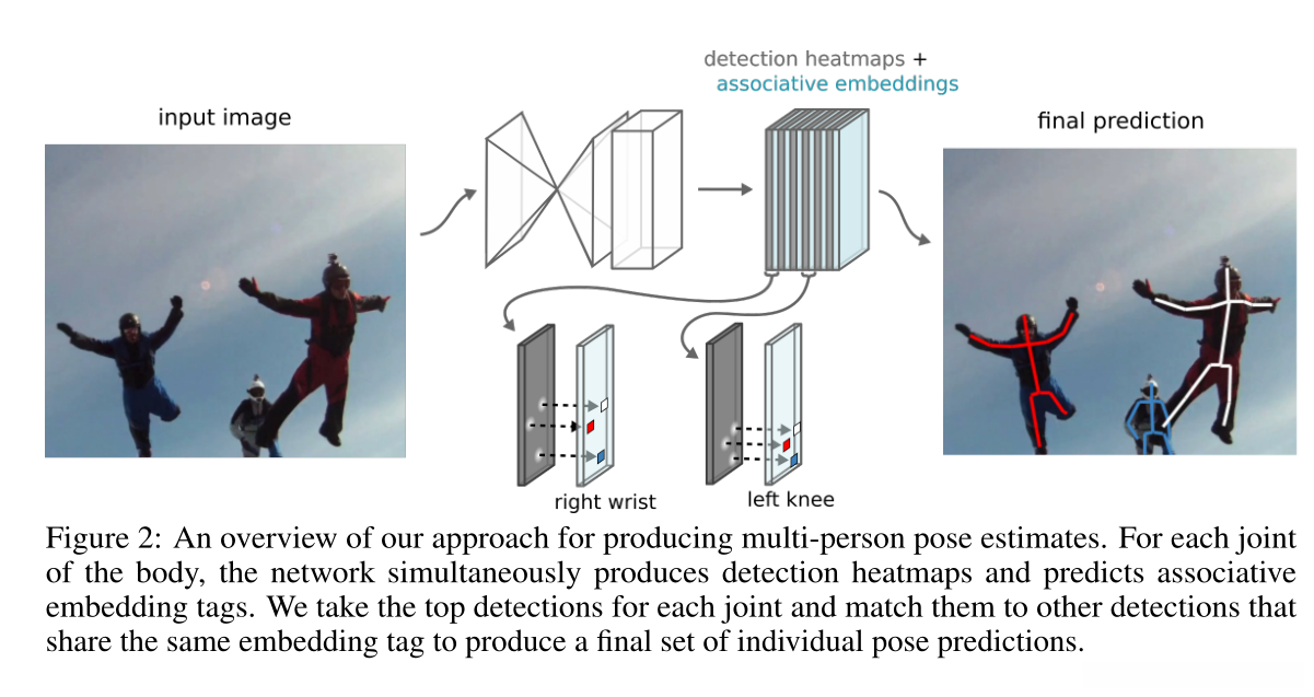 本文提出了一种表征联合检测及分组输出的新方法——联想嵌入。其核心理念在于对每一种检测赋予一个实数作为标签来标识其所属的类别。简而言之,这些标签使每个检测与同一类别中的其他样本相互关联。