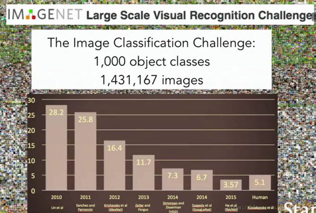 下面是ImageNet挑战赛的从2010到2015的图像分类结果: