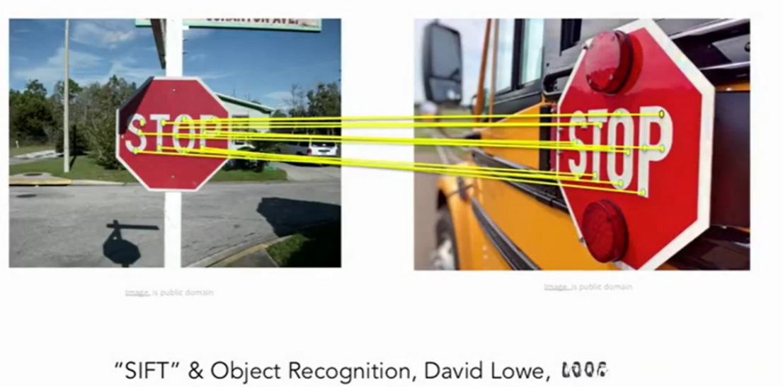 关于如何做到更好的目标识别,是可以继续研究的领域,所以在90年代末和21世纪的前几年,一个重要的思想方法就是基于特征的目标识别。由David Lowe完成的叫做SIFT特征,思路是匹配整个目标。