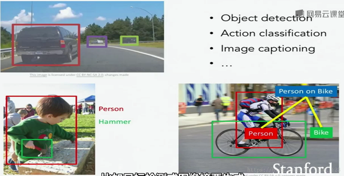 在CS231n课程中,将讨论一些其他的视觉识别问题,它们都建立在专门为图像分类而开发的各种工具之上,一些和图像分类的问题,比如目标检测或图像摘要生成。