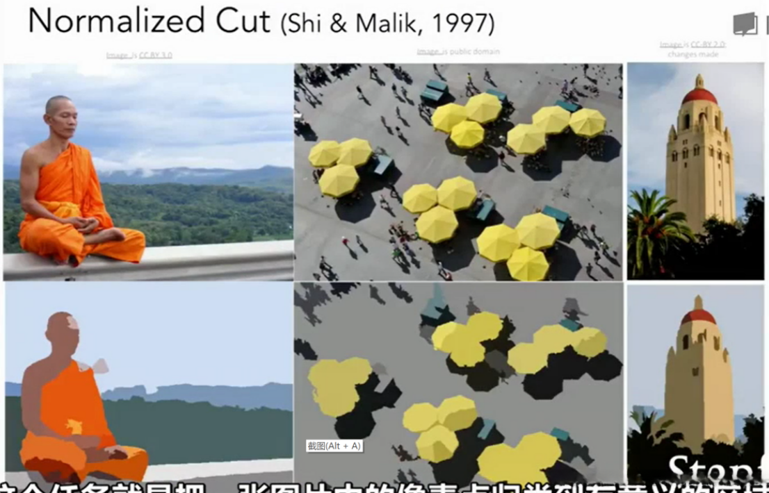 下面是Malik和Jianbo shi完成的用一个算法对图像进行分割: